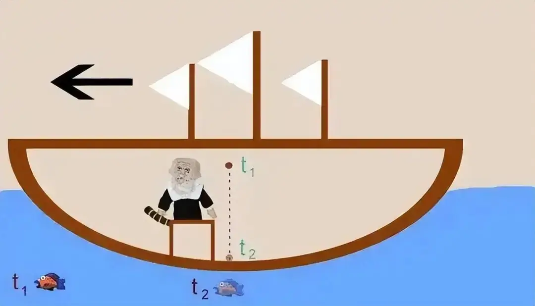 伽利略曾用一个生动的例子来解释这个原理:假设你坐在一艘匀速行驶、平稳无颠簸的大船甲板下的船舱里,船舱内没有窗户,你无法看到外界的景象。