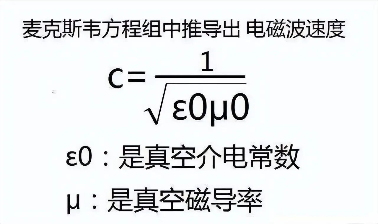 这是因为,麦克斯韦方程组中包含了两个基本的宇宙常数——真空介电常数和真空磁导率,这两个常数是宇宙的固有属性,不随外界条件的改变而改变。而根据麦克斯韦方程组,我们可以推导出一个重要的结论:电磁波在真空中的传播速度,等于1除以真空介电常数和真空磁导率的乘积的平方根。