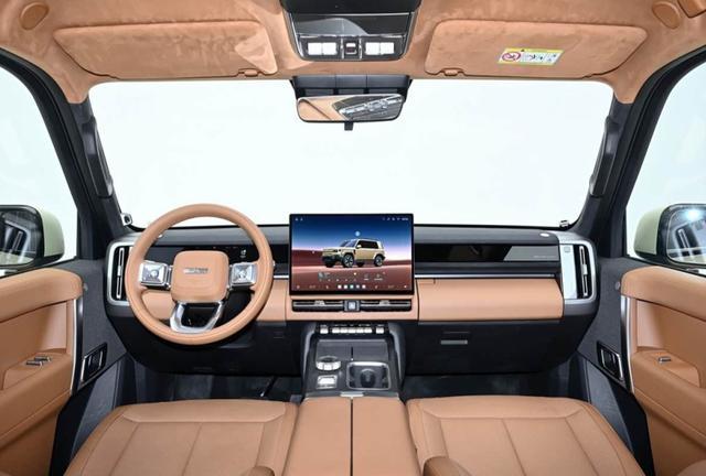 车身长宽高5055/1976/1894mm,轴距2910mm,空间宽敞,5门5座布局,日常载人、放户外装备都无压力,24.5°接近角、600mm最大涉水深度,越野通过性也很出色。配置上诚意拉满,星舰座舱布局,15.4英寸中控屏+8.88英寸液晶仪表,全系标配高通8295P芯片,语音助手支持四音区识别,还能实现人车家互联,标配座椅加热通风、无线充电等实用配置,智驾配置也很全面,顶配可选激光雷达,智驾实力远超同级别竞品。