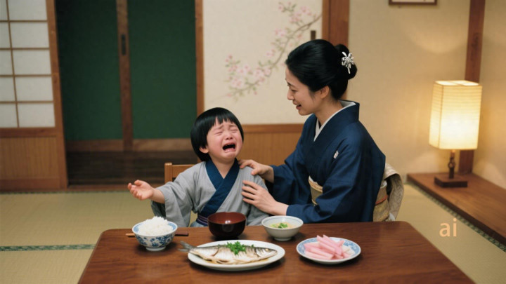 端上来的食物,味道上稍微差一点,他就跟死了亲爹一样拼命嚎淘,不肯吃。